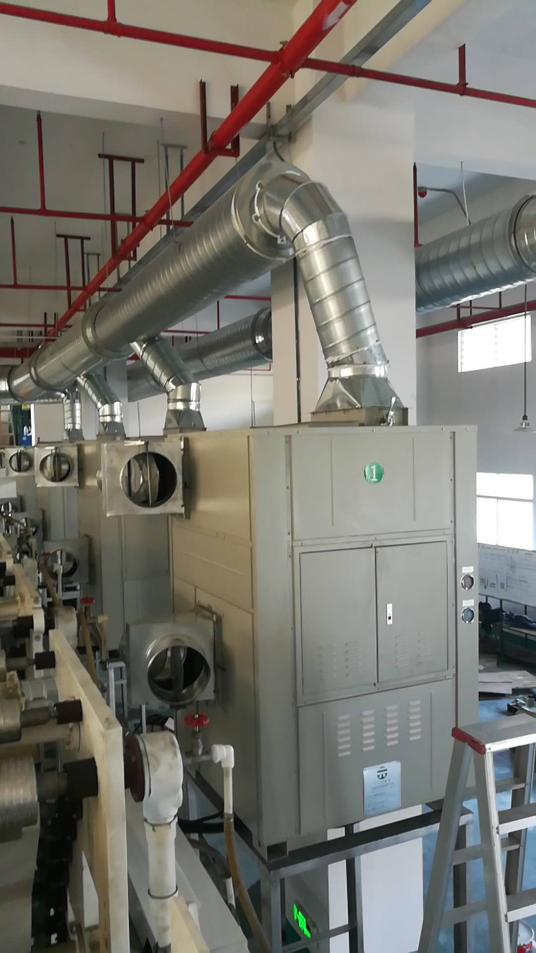 热泵原理是利用逆卡诺循环原理,吸收环境中热能,经热泵装置提升到为高温热能;冷媒(氟利胺)通过压缩机做功,变成为高温高压气体(温度高达80-135℃),进入放置在烘干线内侧的换热器,利用风机的排放热量,升温烘干流水线内空气温度。烘干房内的物料通过热风做功的形式使印刷品表面的水分汽化蒸发,蒸发出来的水蒸汽由排湿系统排走而达到烘干印刷品的目的。印刷烘干热泵的**做功在于提高稳定的高温热风供应,是一种超级热风烘干机。印刷烘干热泵解决方案。采用此方案,印刷机、复合机十分有优势。