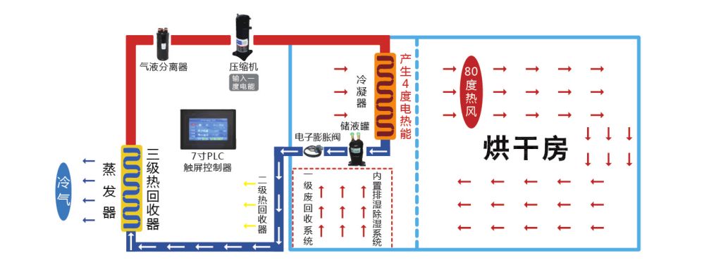 热泵空气能的运行费用只是电加热干燥机的30%,燃油干燥机的40%,燃煤干燥机的60%,而且热泵空气能不要消耗任何材料。