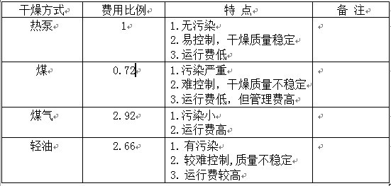 热泵的性能系数以上海桑菱环境能源研究所生产的SRG系列热泵干燥机的平均值,按COP=4.5计算。